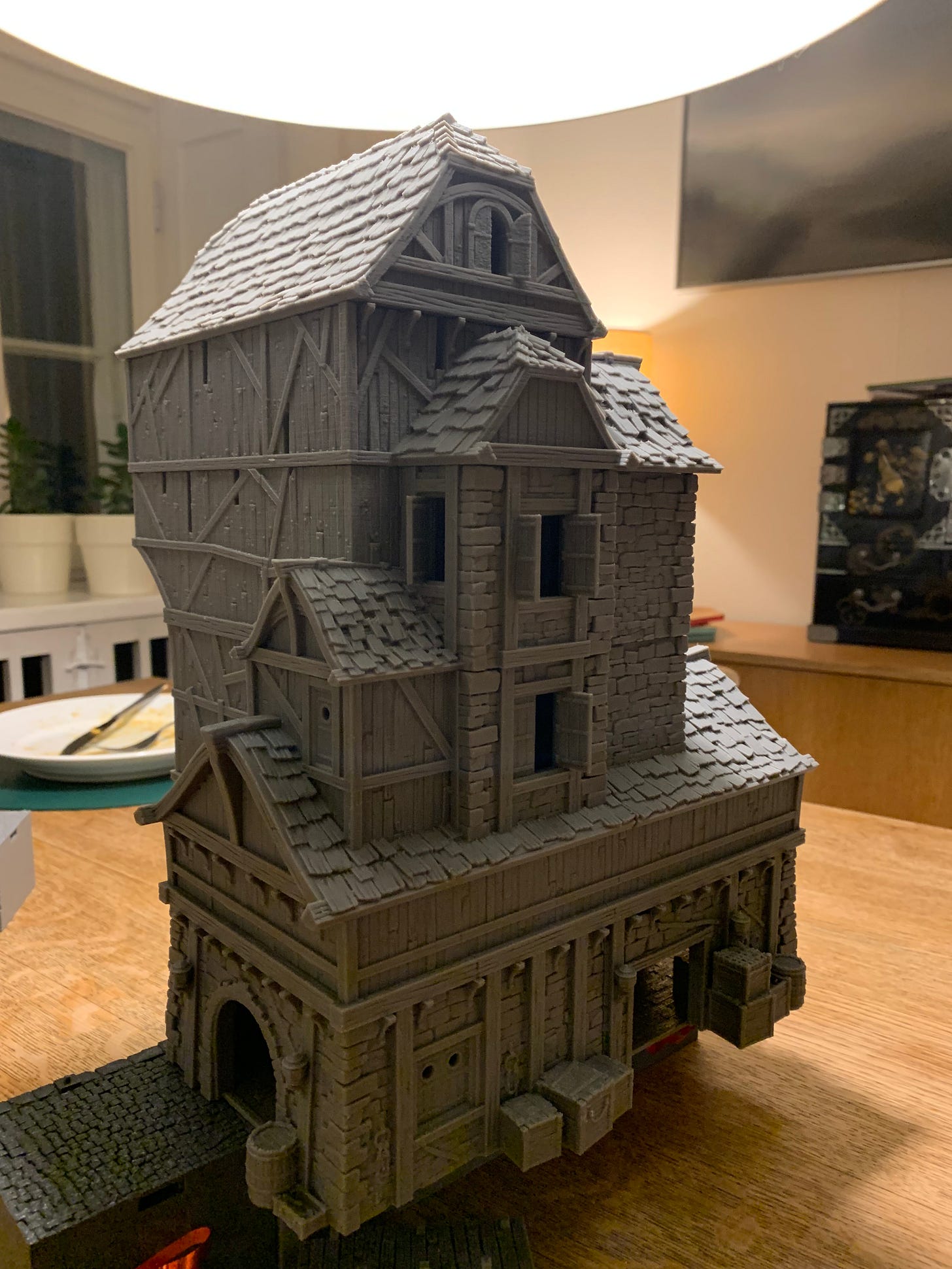 Each level is printed as a seperate model, and they are easy to assemble. With a full interior, the inside needs painting as well – perhaps also some lights?