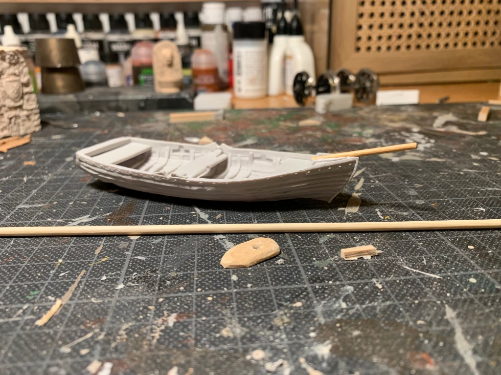 It was a fun and easy conversion of the Elven boat into something more gritty and medieval looking. The Port of Hambeck has to be packed with ships and boats, so it felt great to get started! But, looking at the pictures, I can see that I forgot to add the oars and a scoop for clearing the boat of water. So, almost done 🙂